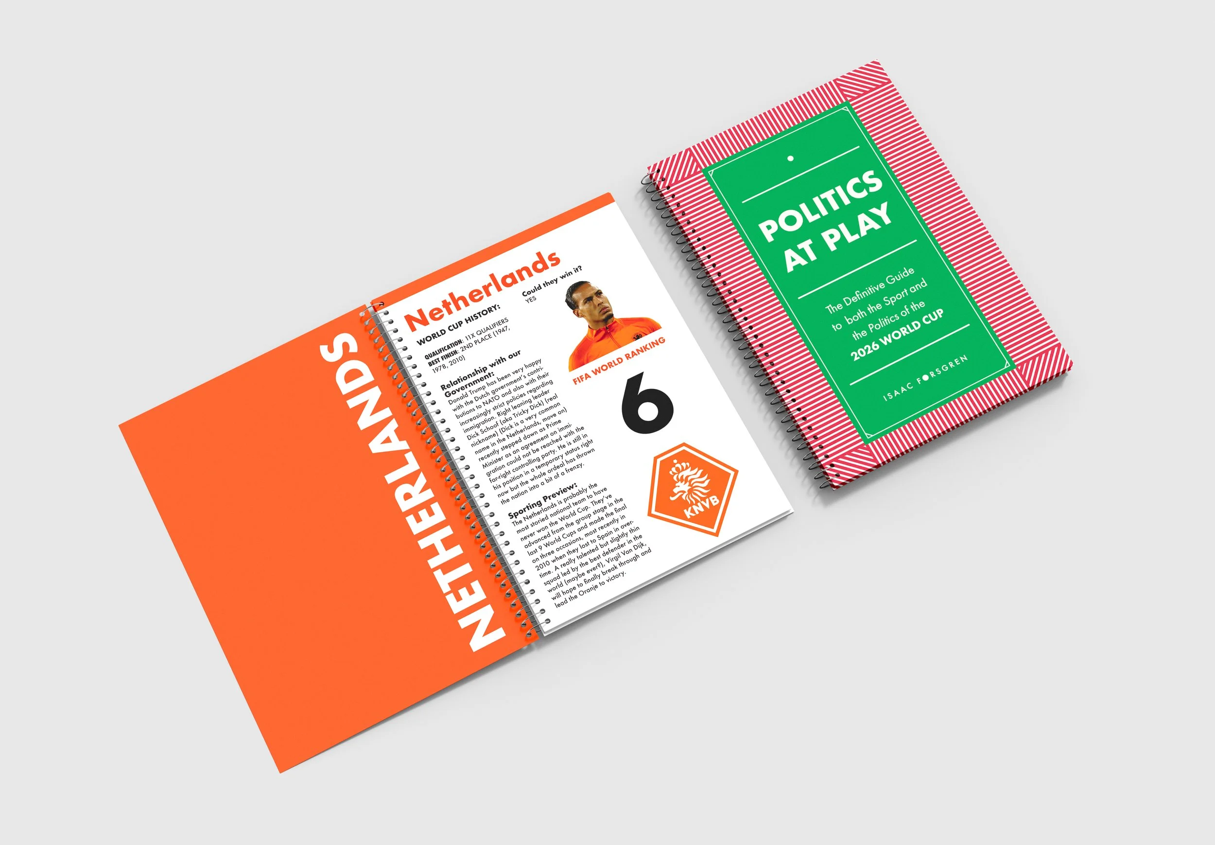 An evolution of the World Cup Poster Series, Politics at Play is a book addressing both the political and sporting landscape surrounding the 2026 World Cup Hosted by the United States, Canada, and Mexico. The book takes you through each nation participating in the tournament and their political standing with the United States government. I felt like I had more to say about the tournament than I was able to express in the poster series so this is a progression of that.
