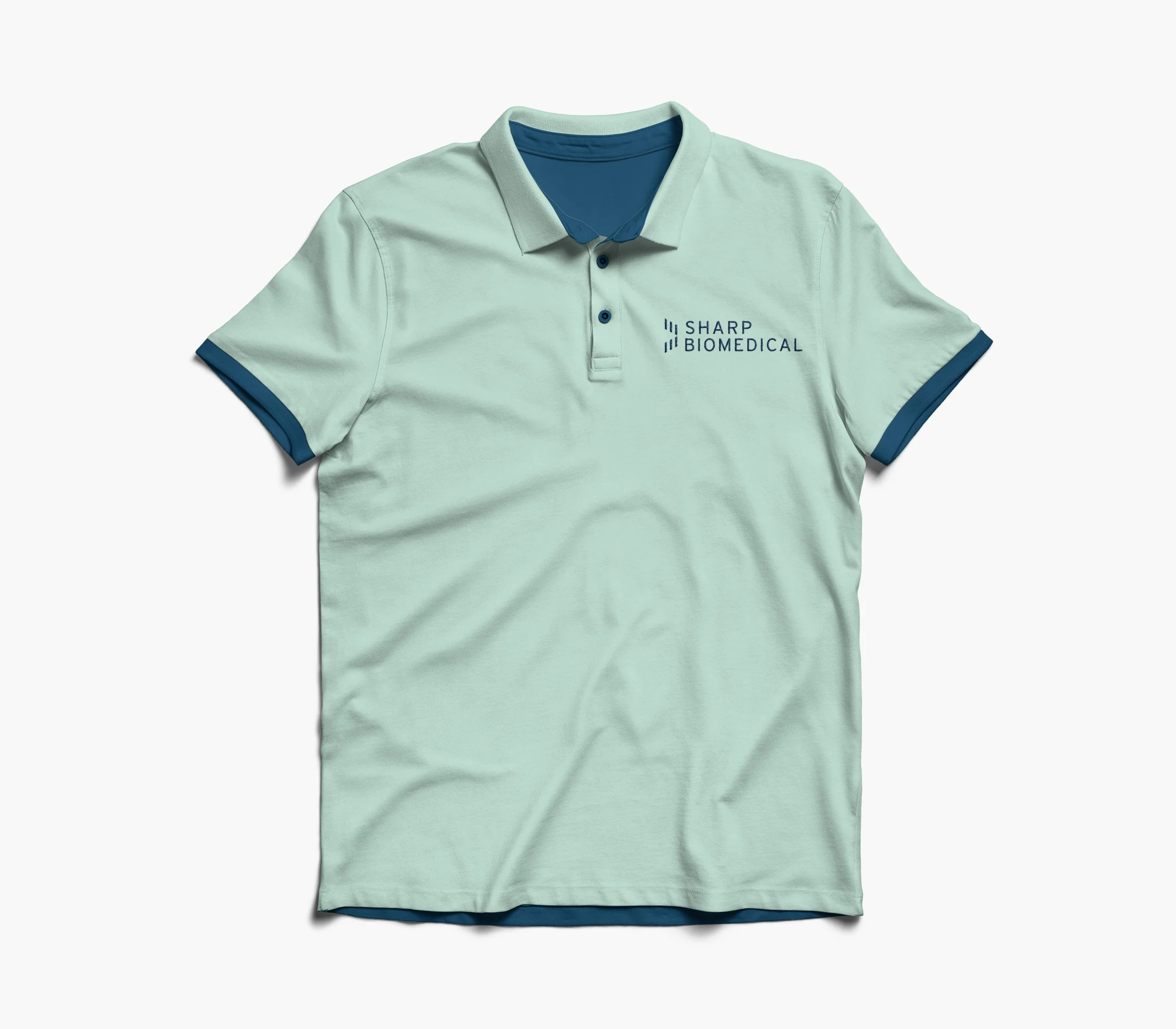 As a startup, a lot of Sharp’s marketing is done in person at trade shows or in presentations to investors. This was on our team’s mind when deciding to provide designs for a slide deck, polos, and business cards.